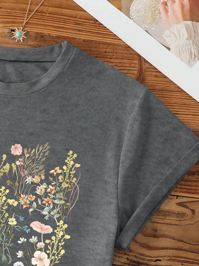 🌿 Camiseta de Manga Corta con Cuello Redondo y Diseño de Plantas